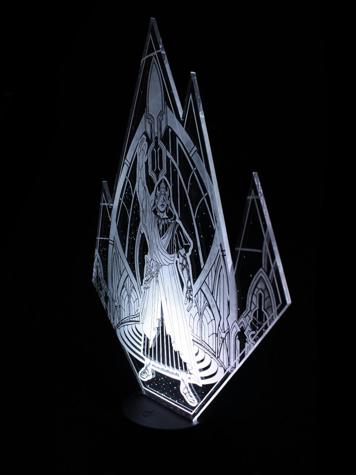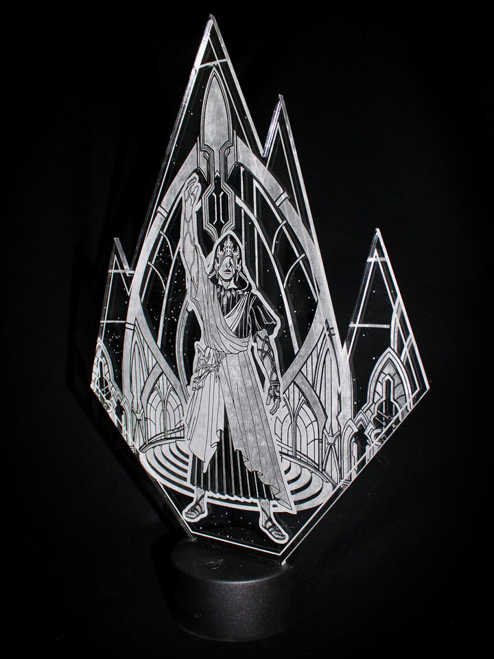 All lamps have a starting price of $80 USD without shipping.The larger the lamp, and the more detailed it is, the more expensive it will be. Detail is included as the amount of area etched on the lamp. Large etched spaces cost significantly more than simple glowing line.All lamps commissioned come with a light base, remote and cord. This cost is included in the price. If you wish to have a type of base other than black, let me know as this will cost slightly extra.All lamps commissioned come with a light base, remote and cord. If you wish to have a type of base other than black, let me know. This cost is included in the price.